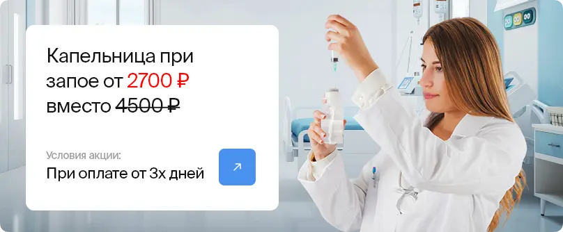 - детоксикация и вывод из запоя на дому, позволяющие снизить интоксикацию и нагрузку на внутренние органы;